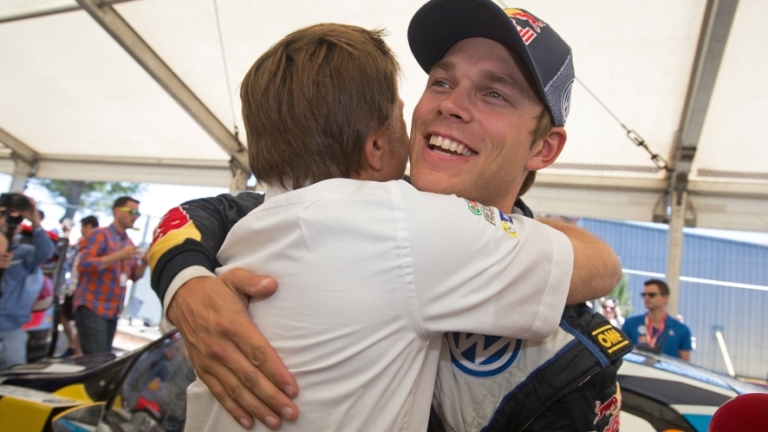 Attimi di incredulitĂ e commozione col copilota Ola Floene. Poi la grande festa, meritata, per il giovane pilota classe 1989 che punta a diventare il fuoriclasse della casa di Wolfsburg nel dopo Ogier.