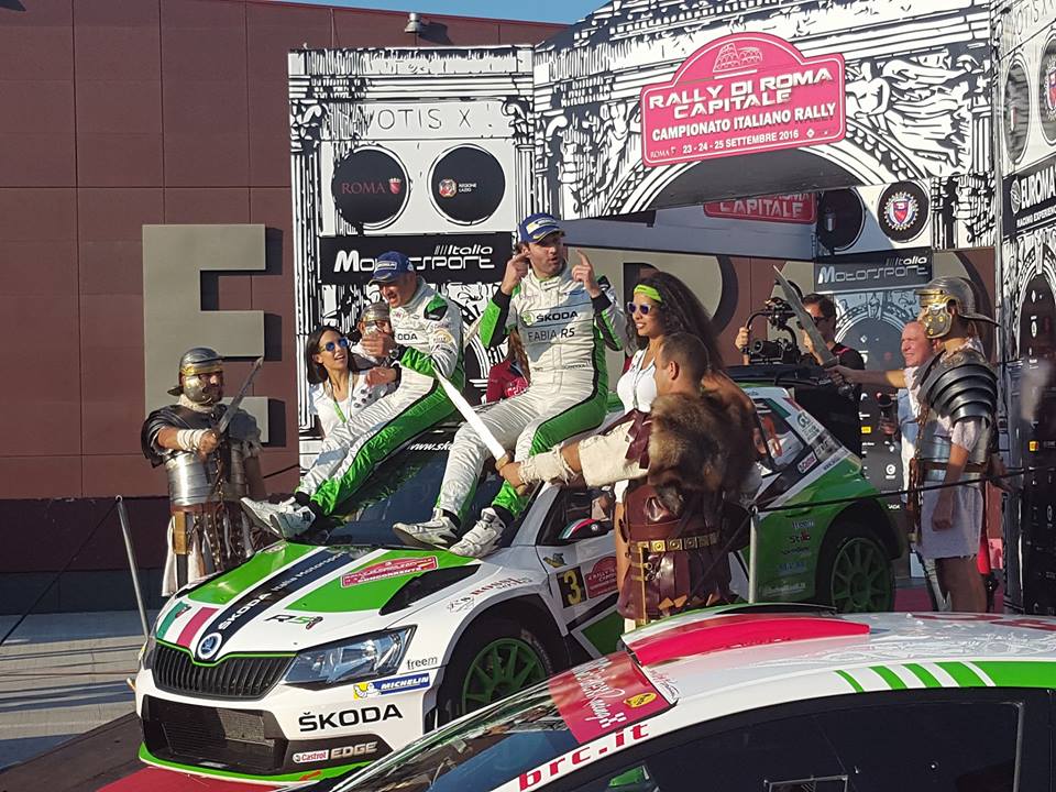 Si è concluso ieri con la vittoria dell’equipaggio Scandola-D’Amore a bordo della Skoda Fabia R5 il 4° Rally di Roma Capitale. Spendido duello all’ultima curva quello tra i protagonisti del CIR, Scandola, Basso e Andreucci, che andranno a giocarsi la vittoria finale al Due Valli.