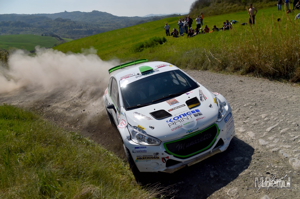 Ottima la seconda piazza delle pantere alate, Simone Campedelli con Pietro Ometto, sempre a loro agio nello sterrato, terza piazza con due prove speciali vinte per il baby finlandese Kalle Rovanpera con la Peugeot 208T16 R5 che precede il compagno di team, Paolo Andreucci autore di una giornata non propriamente da ricordare, condita anche da una foratura.