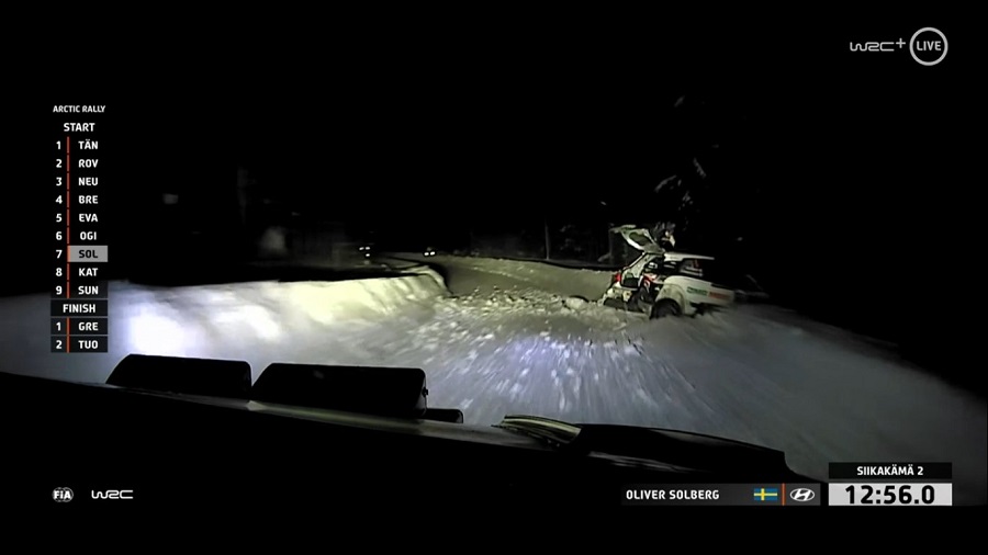 Purtroppo però, proprio all’ultima curva dell’ultima prova di oggi, il maestro di Gap ha commesso un errore non all’altezza del suo talento. Si tratta infatti della stessa curva a sinistra dove, durante lo shakedown, sono usciti molti piloti, compreso Evans, Neuville, e molti altri. Una curva quindi “conosciuta” per essere insidiosa. Dalle immagini si vede che Ogier ha commesso un errore nella curva a destra che, con quella sinistra, forma una specie di S e trovandosi in ritardo all’uscita della destra, non è riuscito a chiudere la sinistra successiva, uscendo largo con il posteriore e venendo risucchiato nella neve fresca.