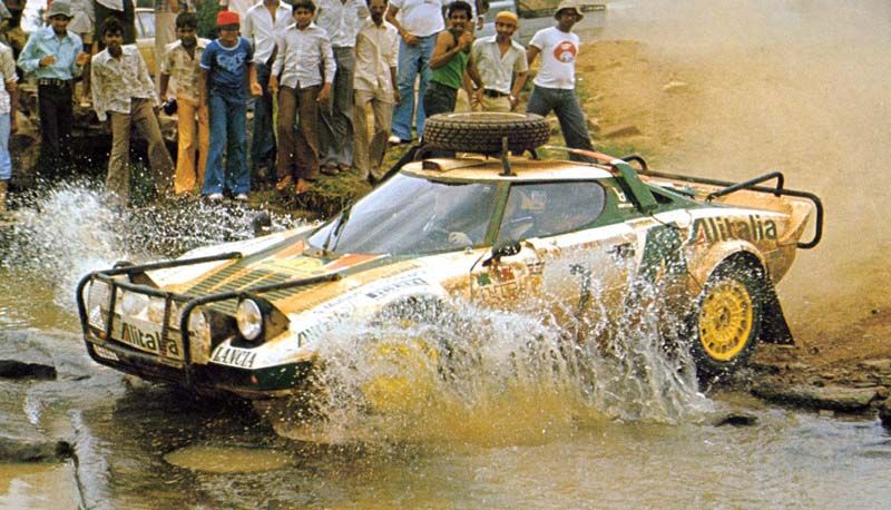 Sandro, dopo l’avventura dell’anno precedente con al fianco Maiga, fu affiancato nel ’77 da Piero Sodano. I due, sempre con la Stratos, si impantanarono un sacco di volte, e corsero per la maggior parte del tempo zuppi dalla testa ai piedi. In un guado la corrente era addirittura così forte da trascinare via la Stratos, e con lei i due italiani. Per riuscire a superare finalmente l’ultimo scalino e issarsi sulla sponda per proseguire, Sandro e Piero furono costretti a scendere dall’auto e posizionare alcune pietre davanti alle ruote posteriori, per consentire agli pneumatici di fare presa e poter proseguire. Persero una eternità.