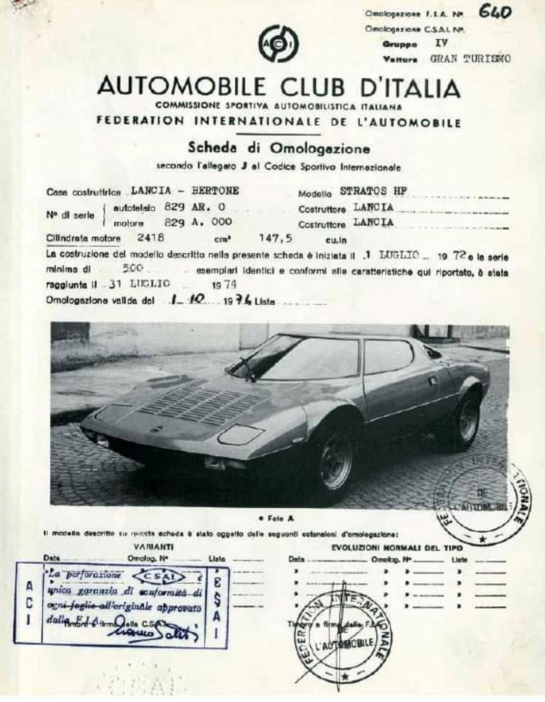 La Lancia Stratos HF infatti aveva ottenuto l’attesa omologazione in Gruppo 4 il 1° Ottobre 1974. Esattamente 50 anni fa. Sull’omologazione della vettura è stato scritto e detto tanto, qualcosa sicuramente è stato anche inventato ma anche questo ha contribuito a farla diventare una leggenda. Quel che è certo, anche per la sua omologazione, entrano in gioco l’astuzia e l’abilità, tutte italiane, di Casa Lancia: riuscire, per “non arrivare lunghi” con l’omologazione, a convincere la FIA che i 500 esemplari richiesti erano stati tutti prodotti entro i termini, mentre oltre 50 esemplari furono prodotti dopo il primo ottobre. Un dettaglio che non avrebbe avuto tutta l’attenzione che ha avuto se la Stratos non fosse stata davvero così temuta dagli avversari.