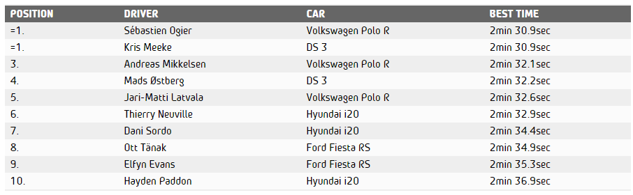 A seguire in classifica Andreas Mikkelsen ad 1,2 secondi e Mads Ostberg. Uscita di strada per Hayden Paddon sulla Hyundai i20 che ha dovuto riparare la vettura in strada per tornare al Service Park di Villa Carlos Paz