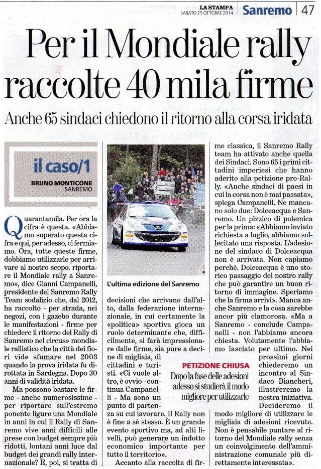 ancora con questa bufala? non e’ vero niente…il san remo rally team non conta un cazzo,non essendo neanche riconosciuto da aci sanremo…la petizione e’ una farsa ed ho verificato personalmente in tanti comuni……….non aggiungo altro ,perché so come stanno le cose e ci sono cause in corso….w il rally sardegna