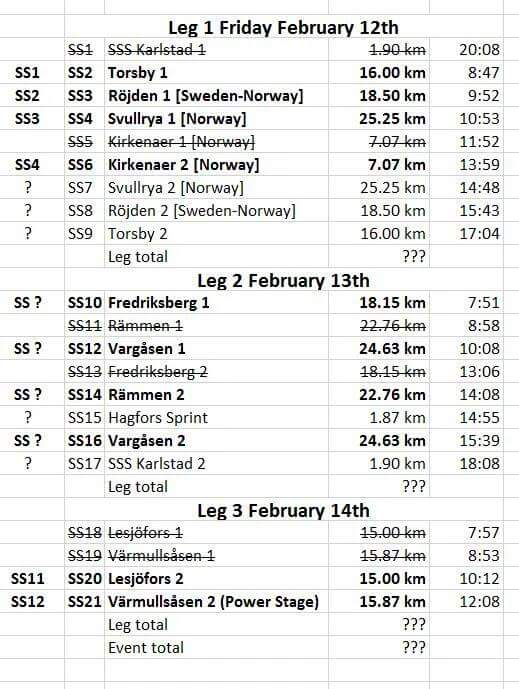 Salta quin la PS 1, la Karlstad, la PS5 e la PS6, ovvero la Kirkenaer in programma 2 volte e la Hagfors Sprint e infine la PS15.