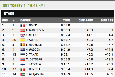 Partenza del Rally di Svezia nel segno del campione del mondo Sebastien Ogier che stampa un ottimo tempo di avvio. Dopo le numerose polemiche dei giorni scorsi la prima prova TORSBY lunga 16.48 km presenta un manto prevalentemente ghiacciato e tiene al passaggio di tutte le WRC.