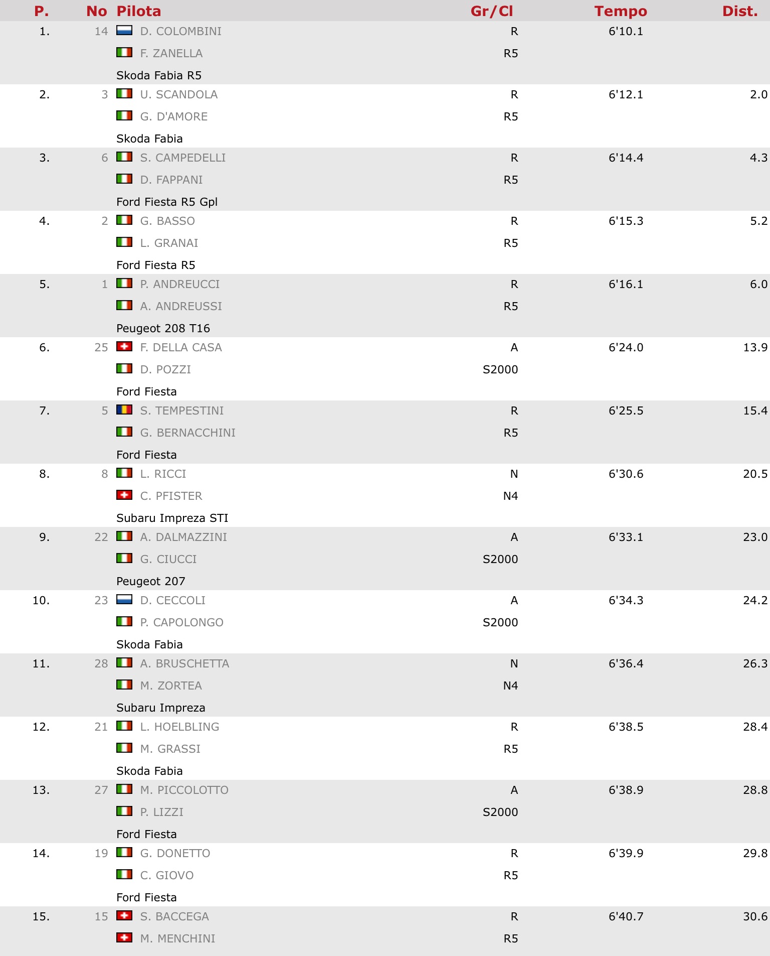 Ecco i tempi dell speciale 10 vinta da Colombini