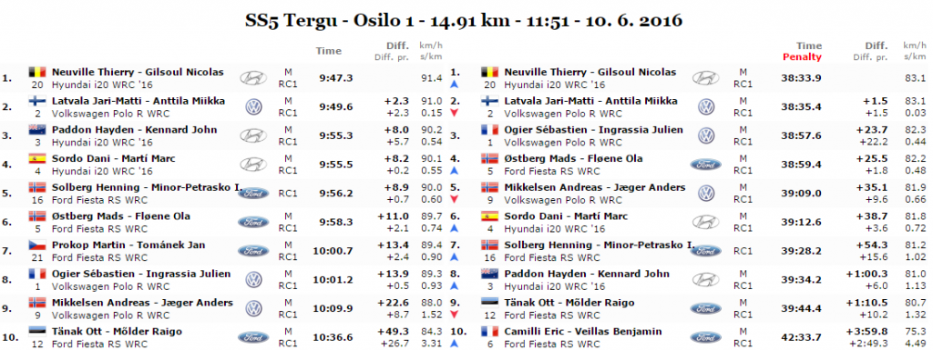 Soffrono invece gli altri due colleghi di Latvala, che sono abbastanza bassi in classifica e pagano qualche scelta nelle gomme. Gomme che si stanno rivelando i problemi principali per quasi tutti i piloti. Da segnalare l’arrivo con le tele al posto dei copertoni da parte di Ott Tanak.