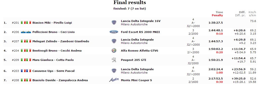 Completano il podio Melegari-Zamboni al volante di Lancia Delta Integrale.