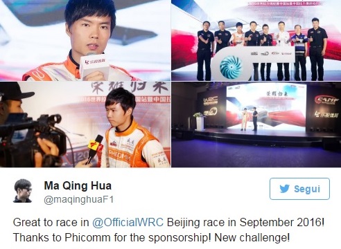 Il pilota del WTCC Ma Qing Hua sembrava dovesse approdare nel WRC dal 2017, ovvero nell’anno del rientro della Citroen nel Mondiale dopo una stagione passata a sviluppare la nuova C3 WRC 2017. Le ultime notizie però, vedono anticipare l’esordio del pilota cinese, precisamente nel rally di casa.