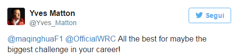 A confermare il messaggio di Ma ci ha pensato Yves Matton, boss di Citroen Racing che ha fatto l’in bocca al lupo al pilota. Ma dovrebbe correre con una DS3 WRC, probabilmente preparata dall’Abu Dhabi World Rally Team.