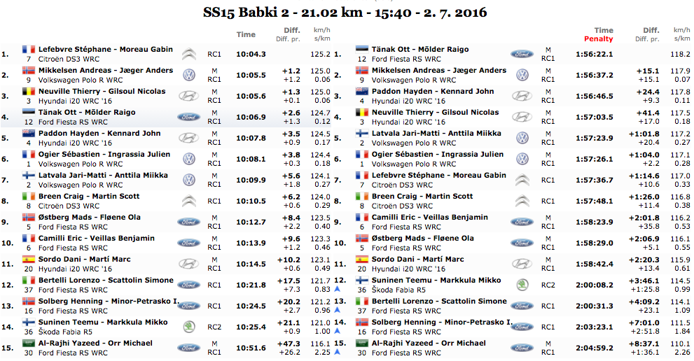 Continuano le sorprese dal Rally di Polonia. Nella bagarre tra Tanak, Mikkelsen e Paddon sulla SS 15 Babki spunta con un tempo incredibile il francesino di Citroen Stephane Lefebvre.
