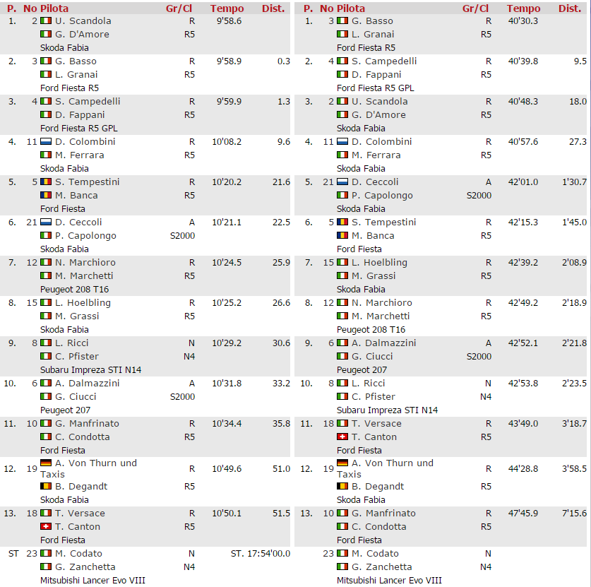 Il pilota veronese attacca il pilota trevigiano, i due fuoriclasse si sono dati battaglia fino all’ultimo chilometro nella Sestino 3, la vittoria della prova è andata a Umberto Scandola che sembra aver risolto i problemi di set-up della sua Skoda Fabio R5