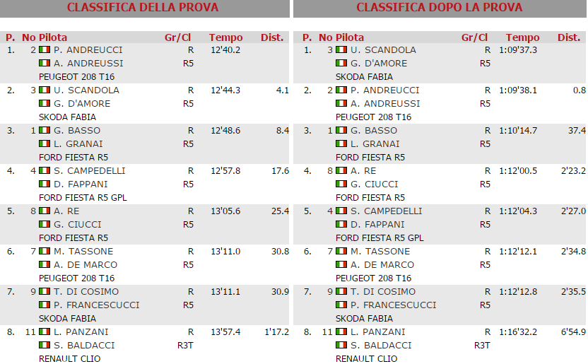 Sulla lunga speciale gran tempone di un redivivo Paolo Andreucci che rifila 4 secondi a Umberto Scandola, classificatosi secondo, ma comunque leader della generale. Basso è terzo staccato già di diversi secondi dai primi. 4.3 da Scandola e oltre 8 secondi da Ucci.