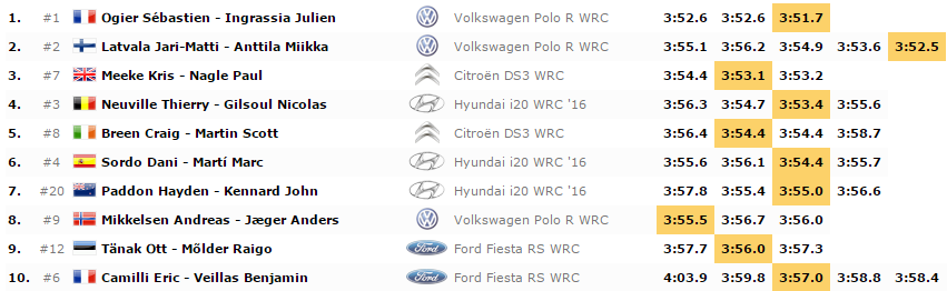 Al quarto posto abbiamo la prima delle Hyundai in gara, quella del belga Thierry Neuville.