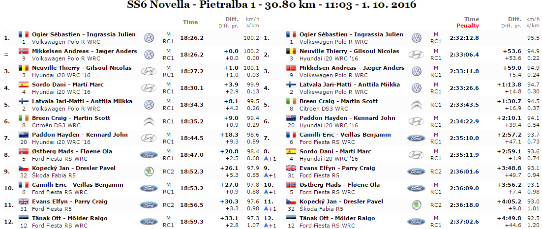 A far da padrone è sempre e comunque Seb Ogier, nonostante i due rivali, Mikkelsen e Neuville concludano praticamente con lo stesso tempo. Mantiene salda quindi la testa della generale Ogier, che sembra non aver minimamente rivali. Tranquillo dunque Ogier che ammette di poter permettersi di controllare la gara.