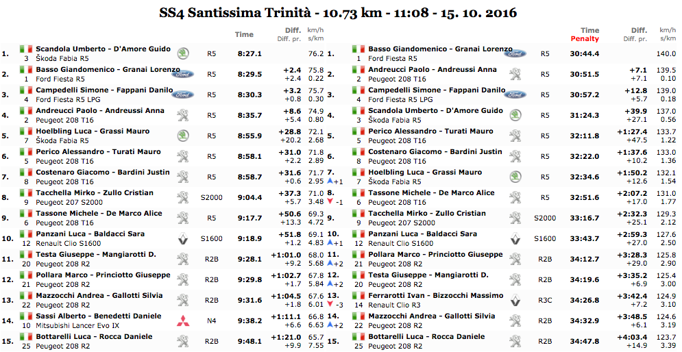 Sale in cattedra Giando che vince due prove delle tre disputate, respingendo colpo su colpo gli attacchi di Andreucci in difficoltà sul fondo scivoloso. Ecco le parole di Basso a fine SS4 Santissima Trinità di 10.73 km: