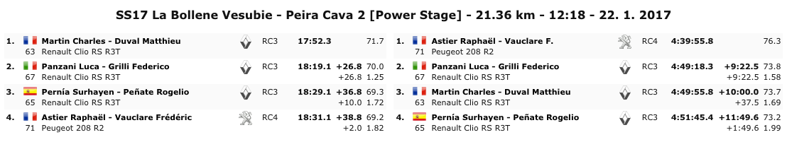 Il rally di Monte Carlo, da sempre caratterizzato dalla presenza di neve, ghiaccio e umido, ha messo a dura prova i concorrenti che disponevano di vetture con le due ruote motrici.Nella classifica riservata ai concorrenti del Wrc3, a trionfare sono Raphael Austier e Frederic Vauclare con la piccolina Peugeot 208 R2B. L’equipaggio transalpino è autore di una gara maiuscola e priva di sbavature, tanto da piazzarsi spesso a ridosso dei migliori del Wrc2 e concludendo la fatica monegasca in diciannovesima posizione assoluta.