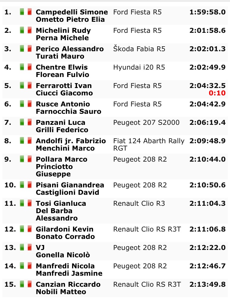 Primo round di questo CIR 2017 vinto, dunque, da Simone Campedelli e Pietro Elia Ometto (prima gara nel CIR con lui).