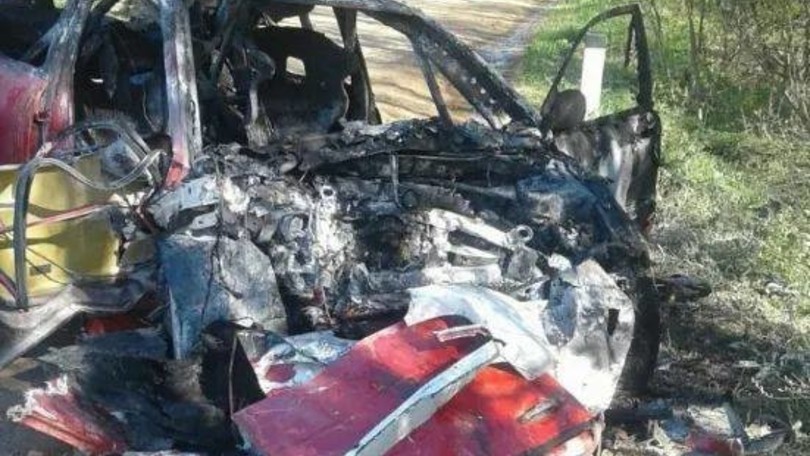 Nell’immagine la vettura di Lukyanuk distrutta dall’impatto e dalle fiamme: