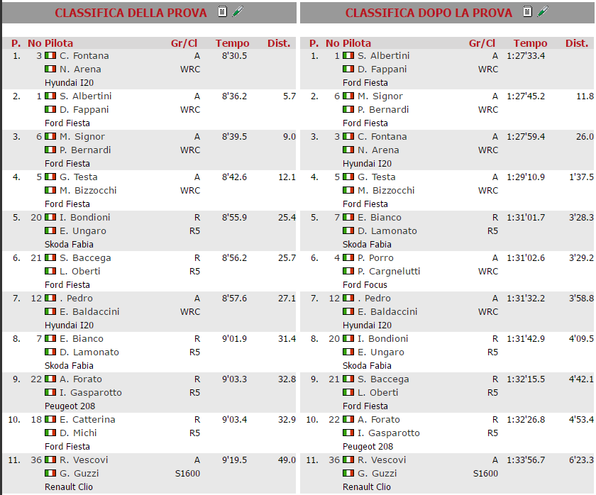 Per quanto riguarda la classifica del campionato italiano WRC, Albertini-Fappani comandano con 45 punti, 17 in più rispetto a Corrado Fontana e 24 su Paolo Porro. Prossimo appuntamento della serie tricolore nel weekend del 25-26 agosto, con il Rally del Friuli Venezia Giulia.