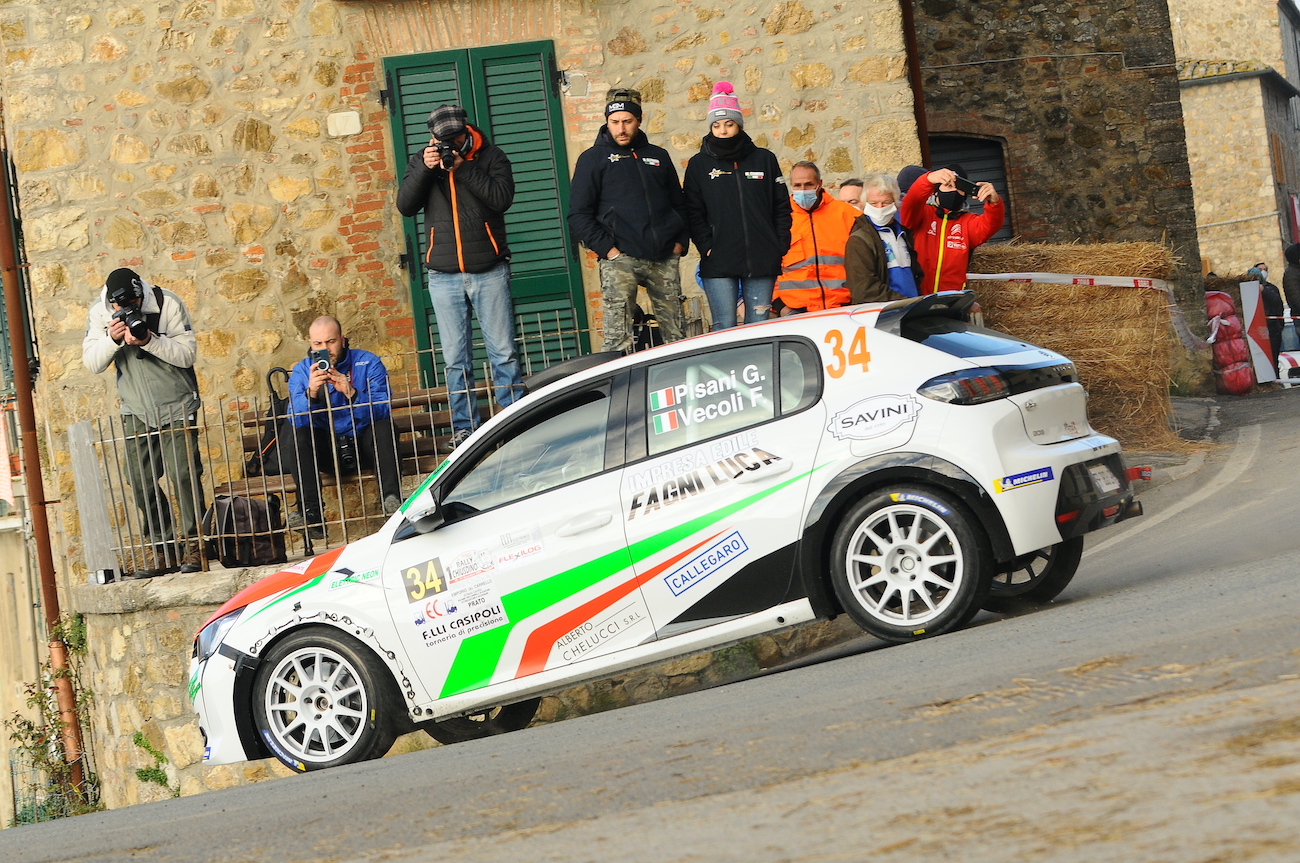 Ancora una volta affollamento da bollino nero nella classe R2B, con una ventina di vetture al via. Dove sono in testa, in perfetto equilibrio di vittorie e punti Power Stage, Gabriele Cogni, con Pollicino alle note, e Marcello Razzini, con Marcomini. Che si dividono anche il primato nel Trofeo Peugeot 208 Rally, con il giovane Tommaso Ciuffi, con Gonella, non lontano dal vertice. Sempre in questa Classe quattro le Renault Twingo Trofeo al via, con Paolo Comendulli, con Marika Guerra a fianco, leader del monomarca.