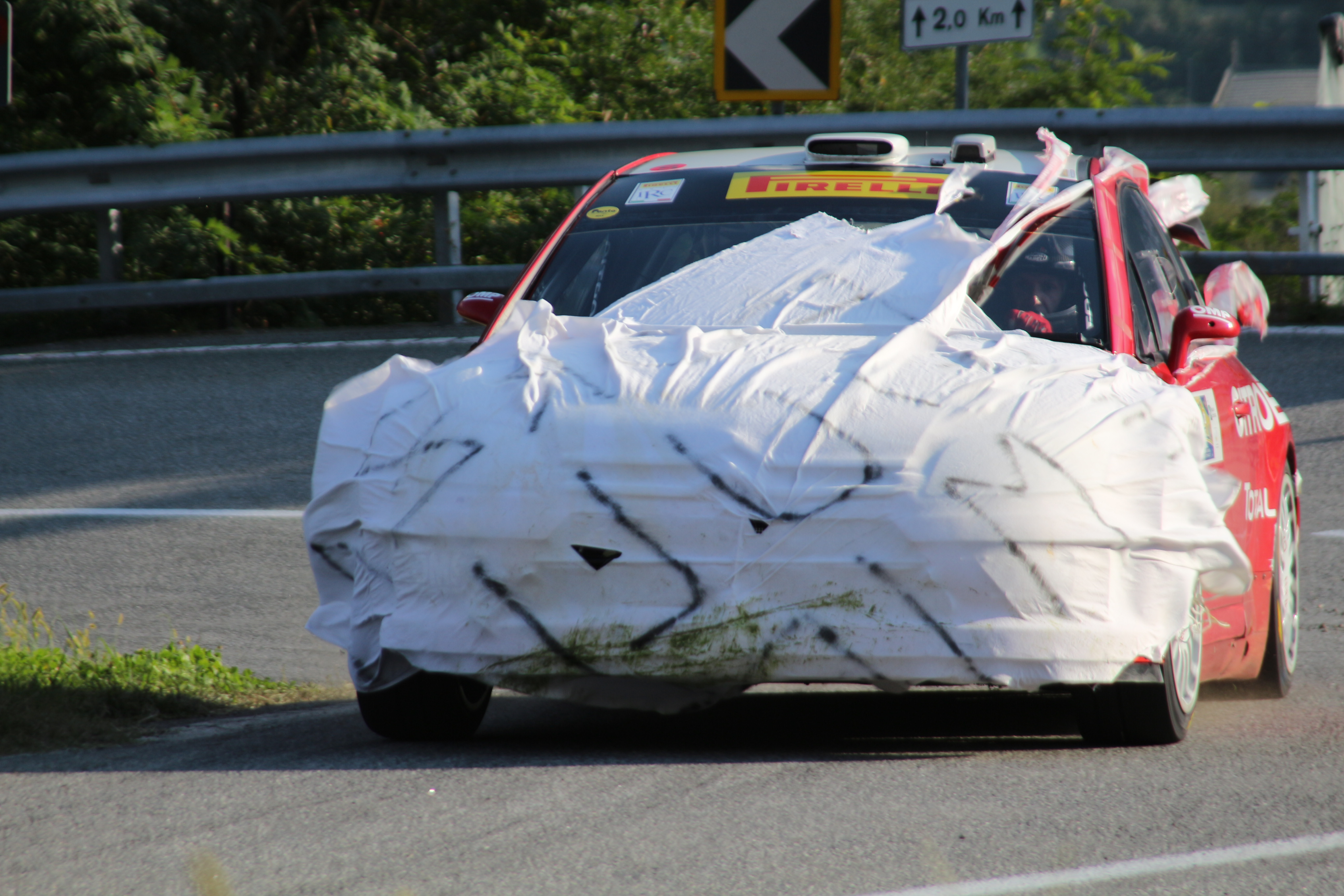 Il bresciano, però, non ha fatto in tempo ad ereditare il comando provvisorio che anch’egli è stato protagonista di un errore sulla ps7, la Trivigno. Una toccata che è costata circa venti secondi al pilota Citroen, lasciando via libera a Rossetti. I guai di Pedersoli sono tuttavia continuati anche sulla penultima speciale, quando è stato costretto a percorrere gran parte della prova con uno striscione sul cofano e sul parabrezza della sua C4. Questo problema gli è costato ulteriori trenta secondi, insieme al secondo posto assoluto del rally.