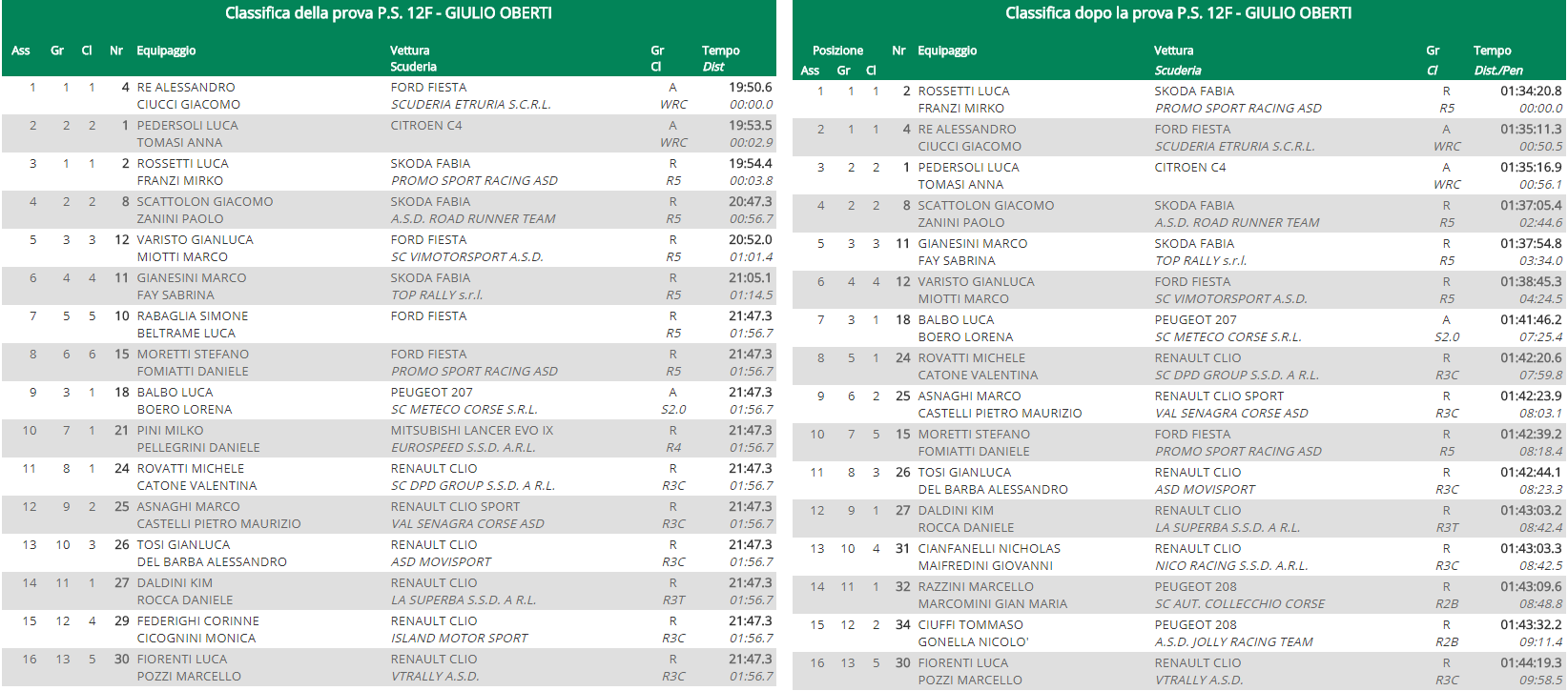 Di seguito la classifica assoluta del 61° Rally Coppa Valtellina: