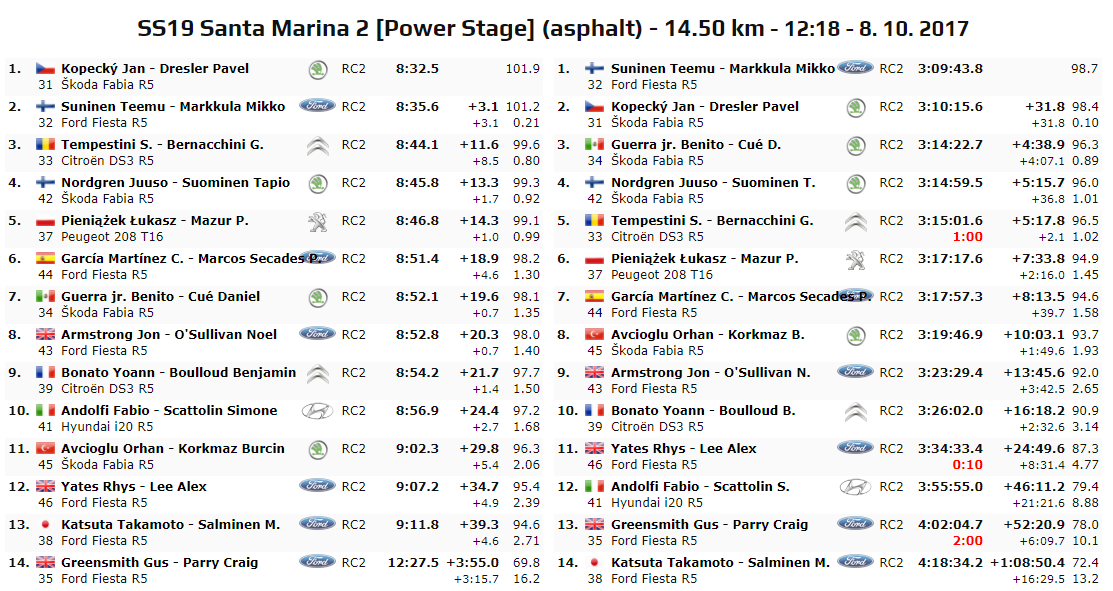 Un weekend assolutamente positivo quello della compagine di Malcolm Wilson, con il doppio podio nella classe regina ed il successo del giovane finlandese nel WRC2. Classe in cui, con il neo campione Pontus Tidemand assente in Catalunya, vedeva il consueto duello tra Skoda ed M-Sport incentrato sul confronto tra Suninen e Kopecky. La gara di quest’ultimo è stata  tuttavia condizionata nella terza prova speciale, quando è stato ostacolato dalla vettura di Serderidis.