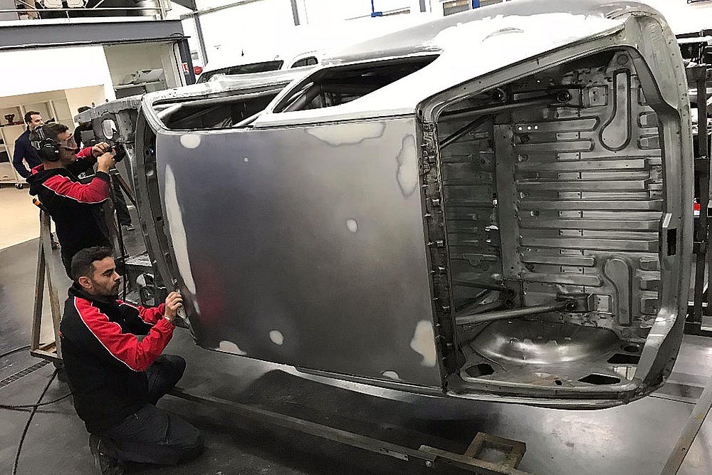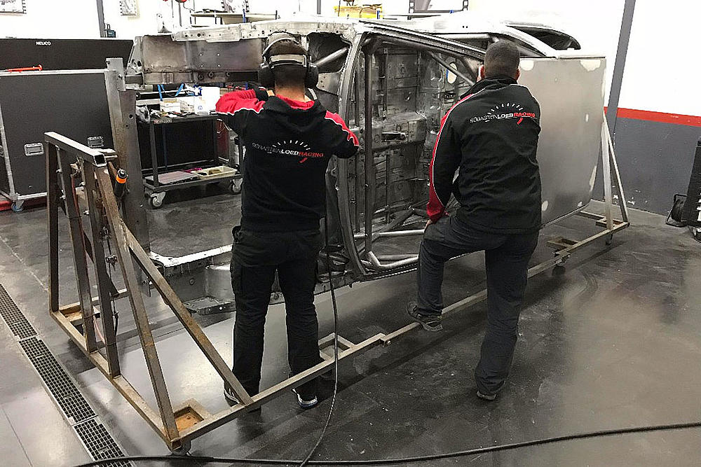Sotto alcune foto (fonte: rallye-magazine) durante i lavori sul telaio della 306 Maxi da parte dei meccanici della Sebastien Loeb Racing: