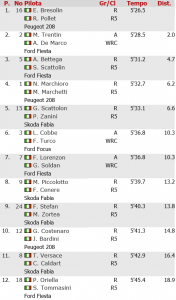 Al terzo posto provvisorio invece si è piazzato il Trentino Alessandro Bettega, navigato dall’ esperto Veneto Simone Scattolin, in gara con una Ford Fiesta R5, a 4.7 secondi da Bresolin.