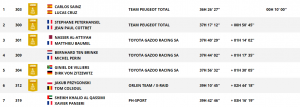 Dietro di loro, il “principe del deserto” Nasser Al-Attiyah, con il Quatariano che ha accusato 5’56 di ritardo dal compagno di squadra, a bordo della sua Toyota Hilux Overdrive, e l’ altra Hilux ufficiale assegnata però al Sudafricano Giniel De Villiers, che oggi ha concluso con ben 11′ di ritardo dal leader.