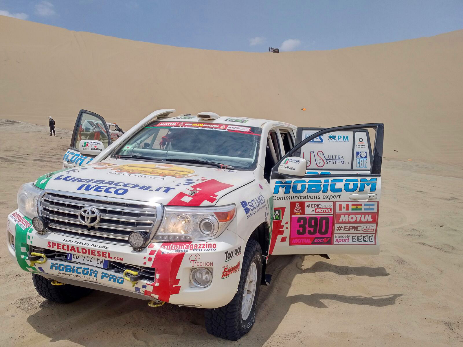 Un inizio ottimo per il morale e per il nostro equipaggio inedito: sulle bollenti dune peruviane avevamo rotto il ghiaccio nel migliore dei modi, con una guida accorta e una vettura che finalmente mi aveva consentito di iniziare una Dakar senza il minimo problema.