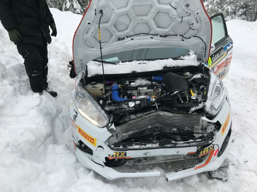 Che peccato, siamo un pelino arrivati lunghi in una curva e siamo finiti contro uno snowbank, danneggiando l’ intercooler ed il raffreddamento della nostra Fiesta R2T.