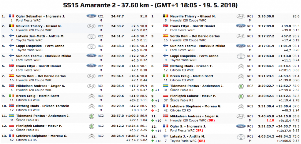 Classifica dopo il giorno 2 Rally di Portogallo 2018