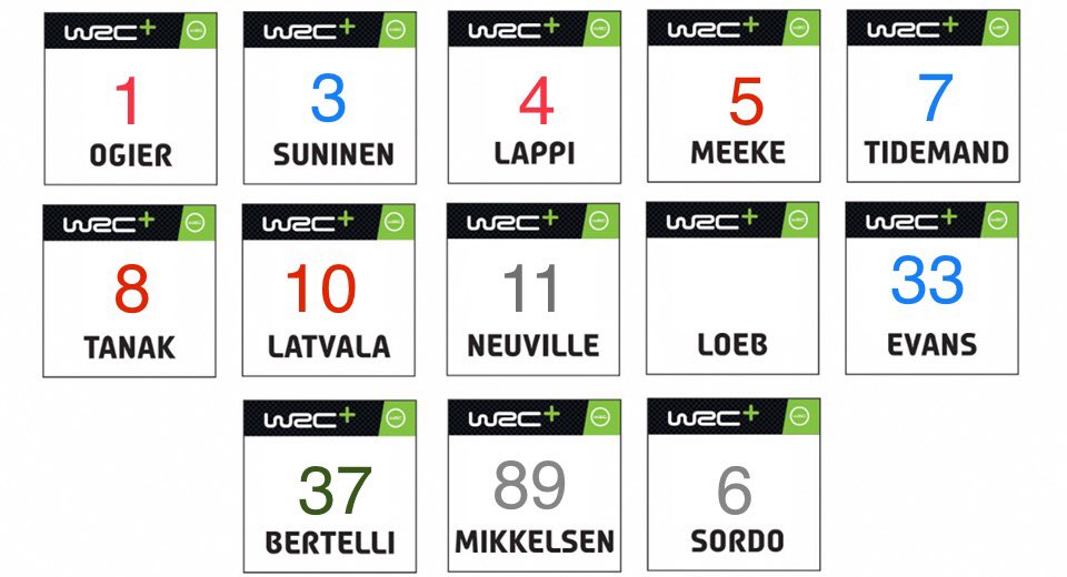 Passando ai numeri di gara, ci sono state diverse ragioni alla base delle scelte dei rispettivi piloti. Partendo da Ogier, il campione del mondo si presenterà di diritto con il numero 1 sulle fiancate. il suo compagno di squadra Lappi ha invece scelto per un motivo social il numero 4. Le sue pagine saranno infatti invase dall’#L4PPI, stessa linea intrapresa anche da Elfyn Evans ed il suo 33. In questa stagione dovremmo infatti abituarci all’#3fyn3vans. In Toyota si punta alla scaramanzia, con Tanak che ha scelto l’8, portafortuna in Giappone, mentre Latvala ha ripreso con sé il numero che aveva al suo esordio assoluto nel mondiale rally. Meeke, grande scommessa di Makinen, correrà con il 5 in onore di sua figlia. Passando a Hyundai, Neuville ha scelto l’11 con il quale si è laureato laureato vice campione del mondo per la prima volta, mentre Sordo ha puntato sulla continuità proseguendo con il 6. Scelta controcorrente invece per Mikkelsen, che punta sulla data di nascita sua e di Jaeger, l’89. Tra i piloti M-Sport, Suninen punterà sul numero con cui ha iniziato a correre con i kart, con Bertelli che, nonostante non si sappia ancora il suo programma, gareggerà con il 37.