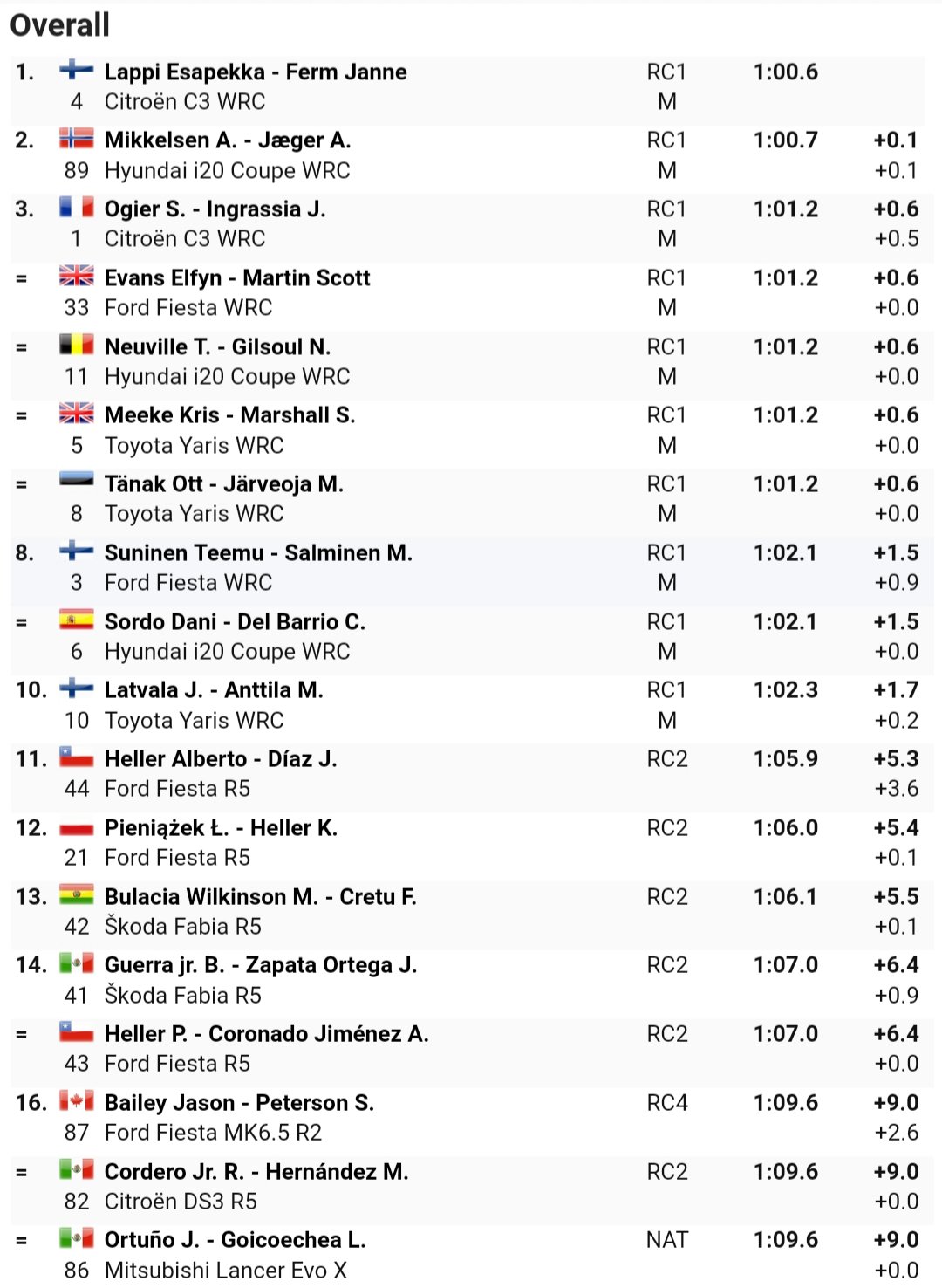 Esapekka Lappi su Citroen C3 WRC è stato il più veloce nella prova spettacolo di 1,14 km disputata nella nottata di ieri a Guanajauto, risultato però macchiato dall’annullamento della prova quando ancora mancavano i tre big del campionato, ovvero Ott Tänak, Thierry Neuville e Sébastien Ogier.
