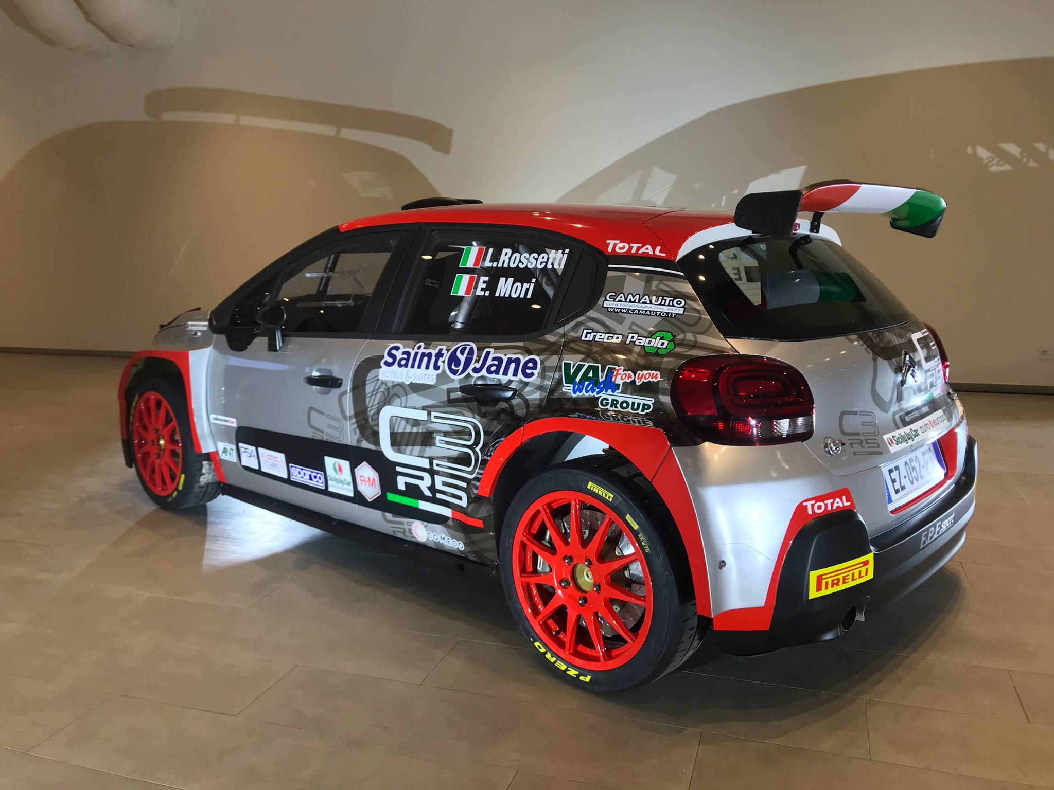 Il tricolore bene in vista, mescolato con il rosso fuoco tipico del Double Chevron su una base grigia: queste le principali caratteristiche della livrea della Citroen C3 presentata oggi alla presenza dell’equipaggio composto da Luca Rossetti ed Eleonora Mori.