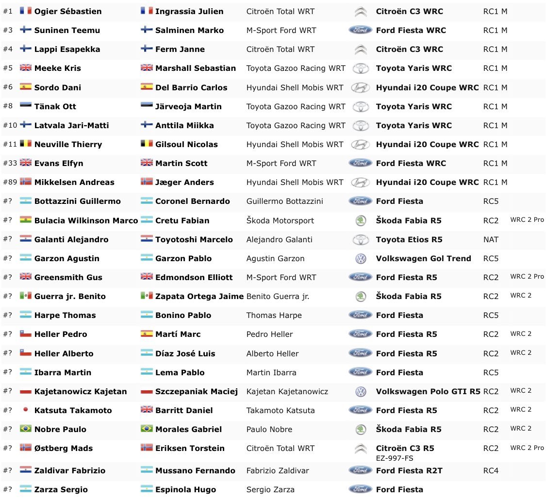 Sono 26 gli iscritti al Rally Argentina, quinta prova del Campionato WRC. Dieci le vetture WRC+ al via, dove troviamo tutti i maggiori protagonisti della stagione.