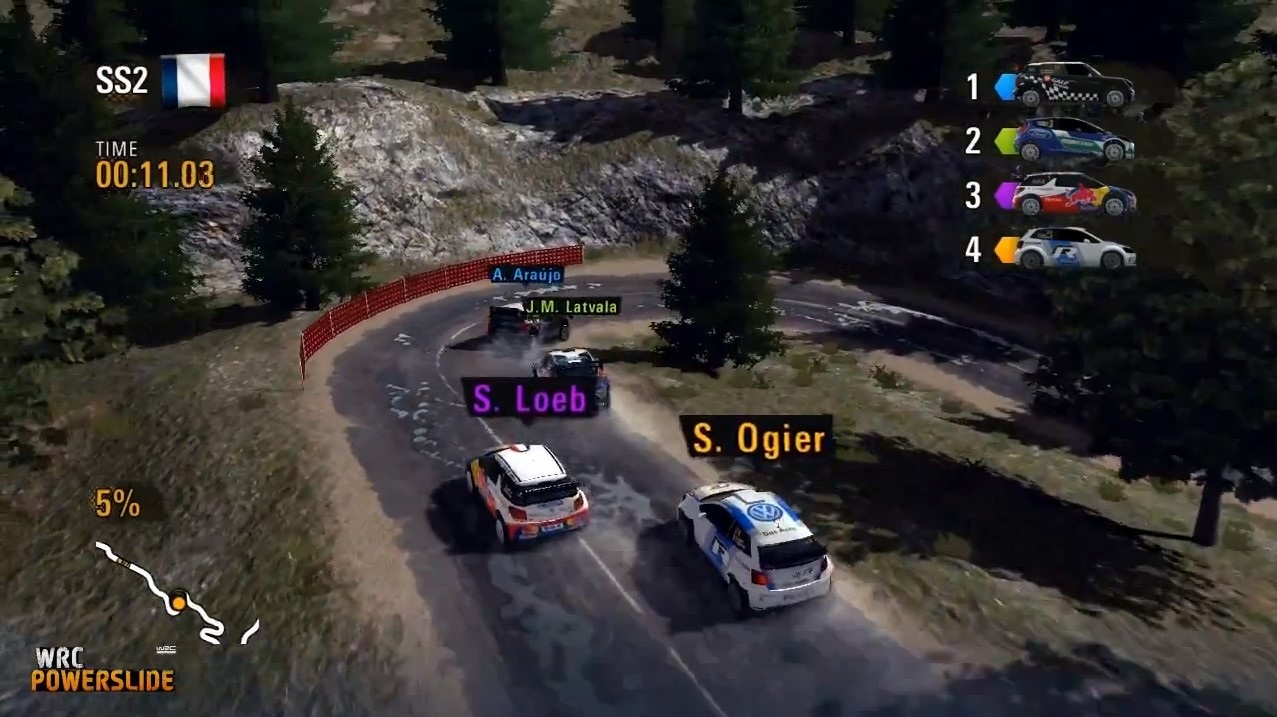 Nello stupore generale, a Marzo 2013, venne rilasciato WRC Powerslide, un titolo molto particolare, basato sulla stagione del mondiale rally 2012, all’interno del quale non bisognava percorrere e vincere prove speciali da soli contro il cronometro e con il navigatore sul sedile di destra, ma lo scopo consisteva nel cercare di essere davanti a tutti in gare da quattro partecipanti in simultanea (come in pista), senza note del codriver, su varie speciali disseminate in otto rally ufficiali, ciascuno con 3 PS.