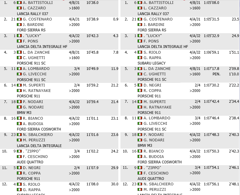 Decimo posto per la Ford Sierra Cosworth 4WD di Riccardo Bianco e Andrea Budoia, i quali hanno migliorato speciale dopo speciale, mentre undicesima è arrivata la fantastica Audi Quattro GR.B di “Zippo” e Fabio Ceschino, a 2’46”.