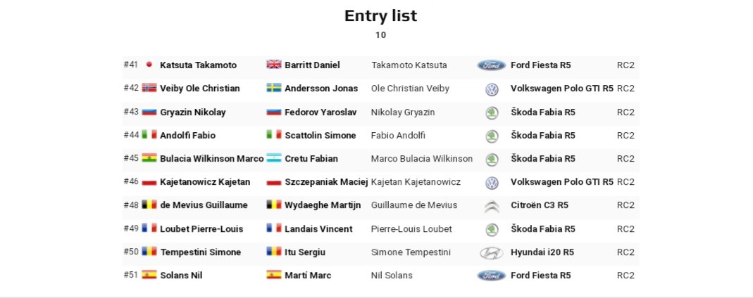 I nostri dovranno vedersela contro il norvegese Ole Veiby, al via con la Volkswagen Polo GTi R5, contro le Škoda Fabia R5 di Nikolay Gryazin, Marquito Bulacia e Loubet e le Fiesta R5 di Katsuta e Solans. Resta un piccolo dubbio sulla vettura che sarà portata in gara da Kajto, ancora indeciso tra la sua Polo GTi R5 oppure la Škoda Fabia.