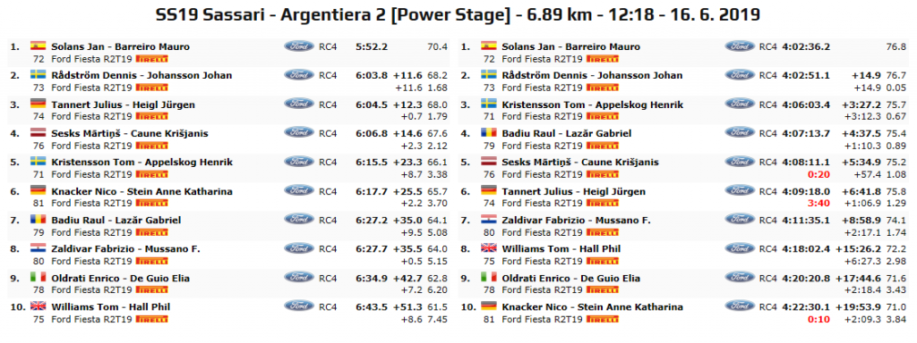 Ma neppure nella Power Stage c’è stata storia, e Solans, coadiuvato da Mauro Barreiro si è portato a casa il Sardegna tra gli Junior con 14.9 secondi di vantaggio su Dennis Radstrom-Johan Johansson, equipaggio in piena lotta per il campionato.