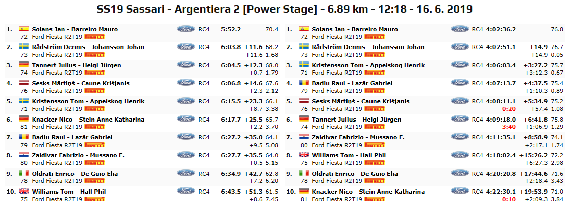 Ad inizio giornata il driver nordico si è trovato quattro secondi da gestire, ma il ventunenne Solans ha dominato tutti i tratti in programma, passando in testa con 3.3 di vantaggio prima dell‘ultimo tratto cronometrato.