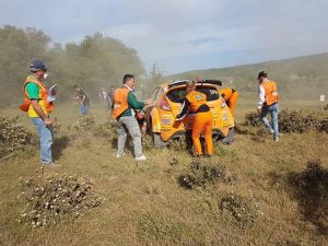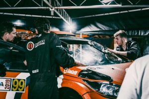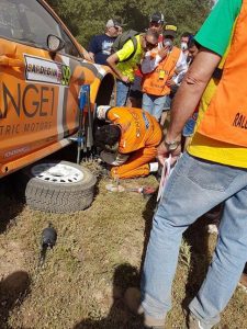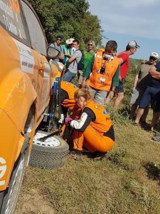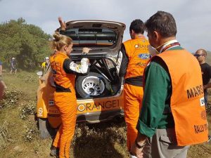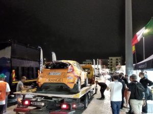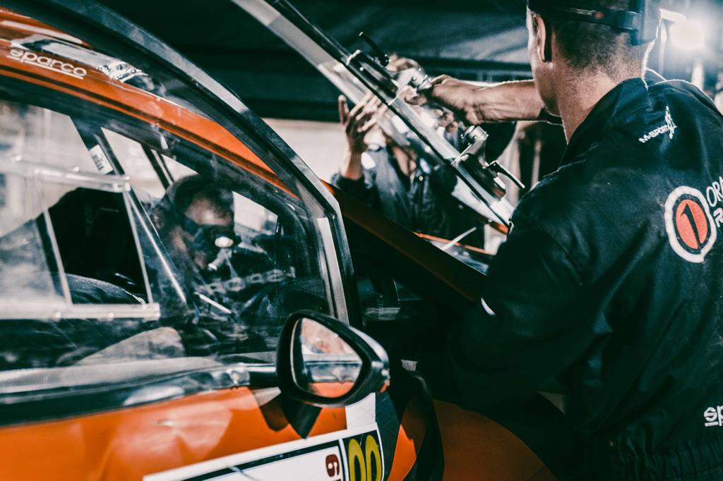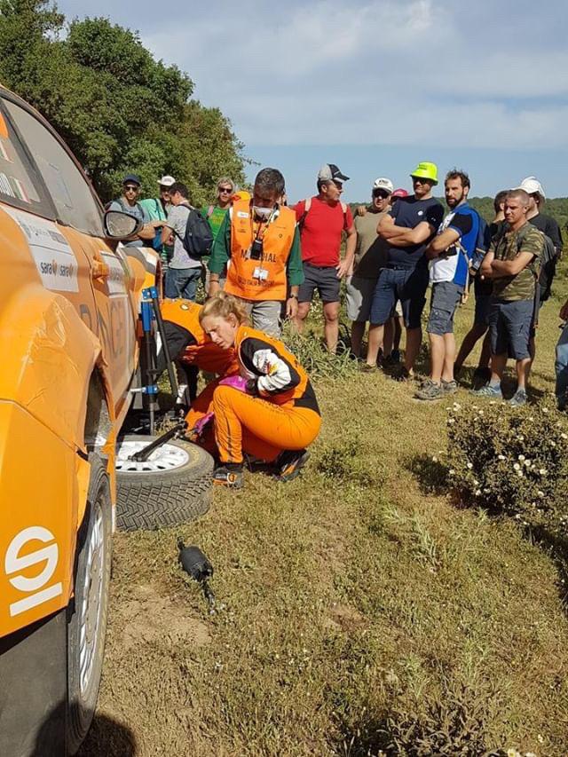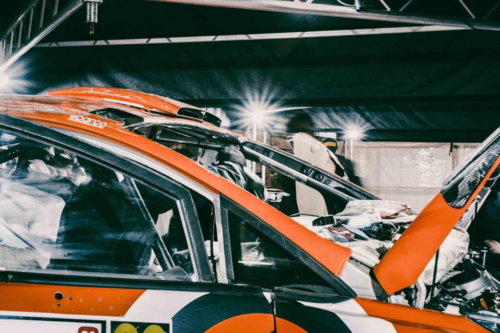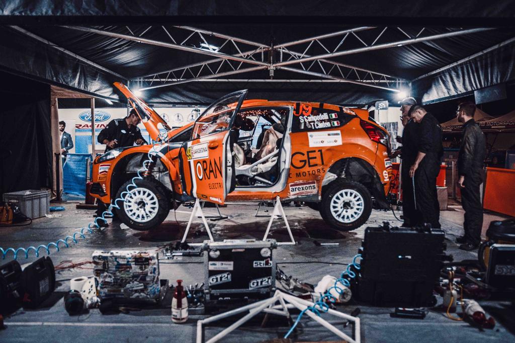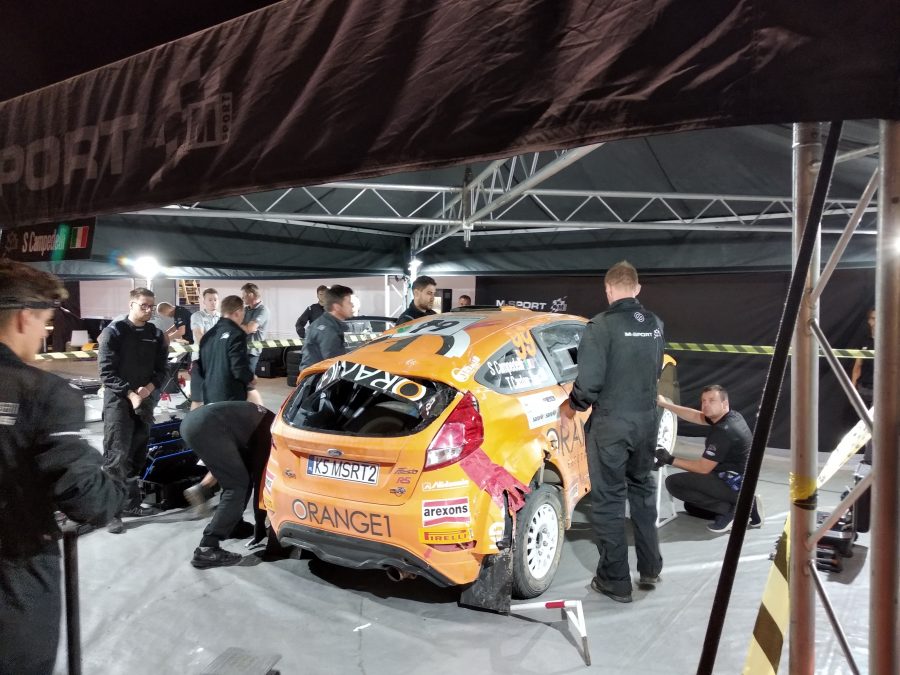 a questo punto andava in scena la spettacolare capacità dei ragazzi di Orange1 ed M-Sport che si mettevano immediatamente all’opera per riconsegnare la Ford Fiesta R5 nelle mani di Simone e Tania nei tempi previsti dal regolamento. Riuscendoci.