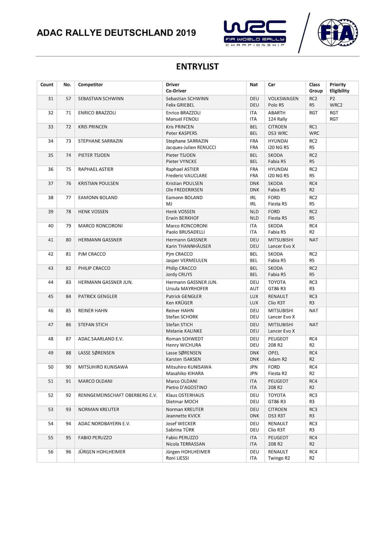 WRC – Sono 56 gli iscritti al Rally Germania 2019, ben 7 gli equipaggi Italiani