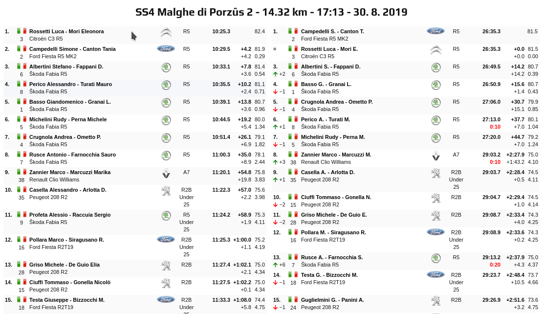 Classifica Provvisoria Rally Friuli Venezia Giulia 2019