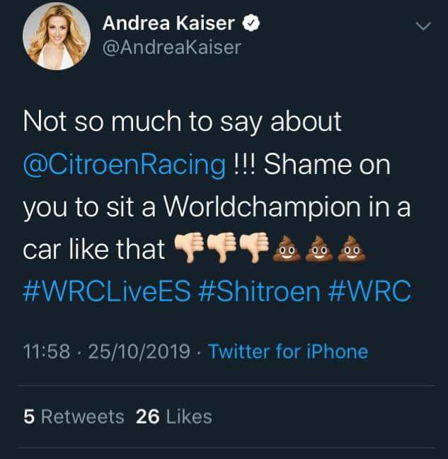 La sua reazione è stata affidata ai social e non è stata per nulla leggera. Un tweet arrabbiato e deluso, seguito da una serie di emoticon e hashtag tra cui un “curioso” #Shitroen