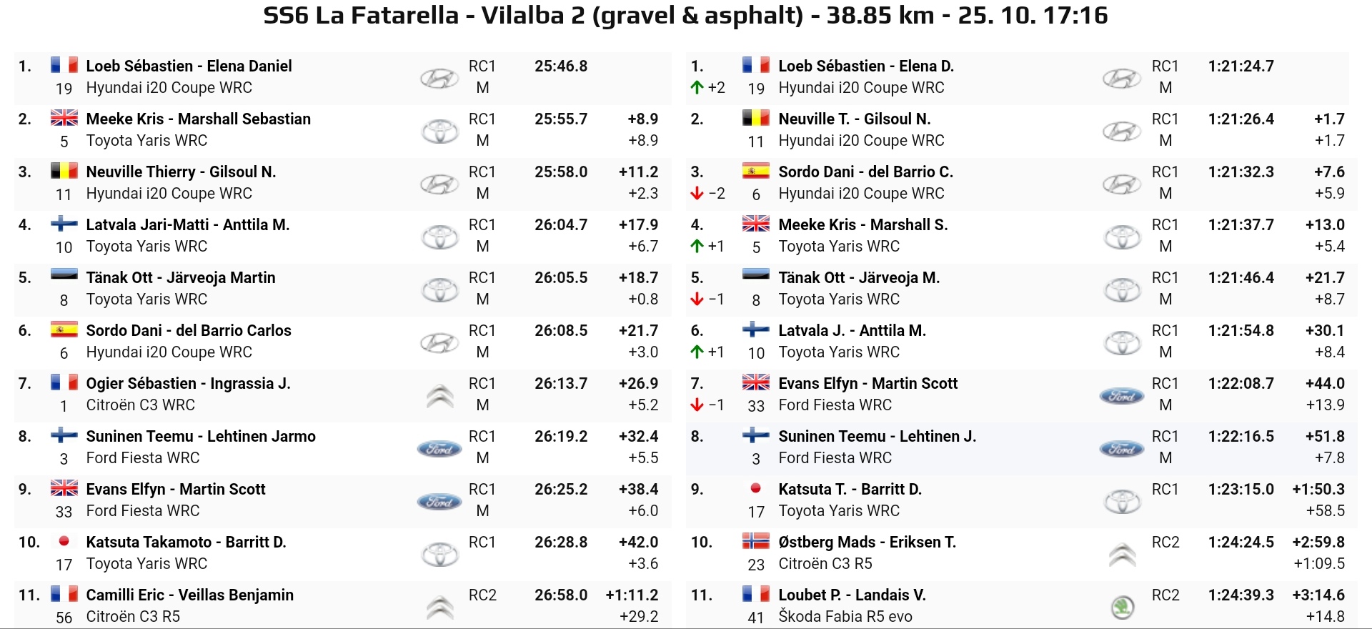 La Toyota del driver estone viaggia tranquillamente al quinto posto assoluto, lontana da rischi e grattacapi inutili considerando le difficoltà mattutine di Ogier. La C3 del transalpino accusa da subito problemi tecnici, facendo infuriare addirittura la moglie (con conseguente tweet al vetriolo verso Citroen Racing).