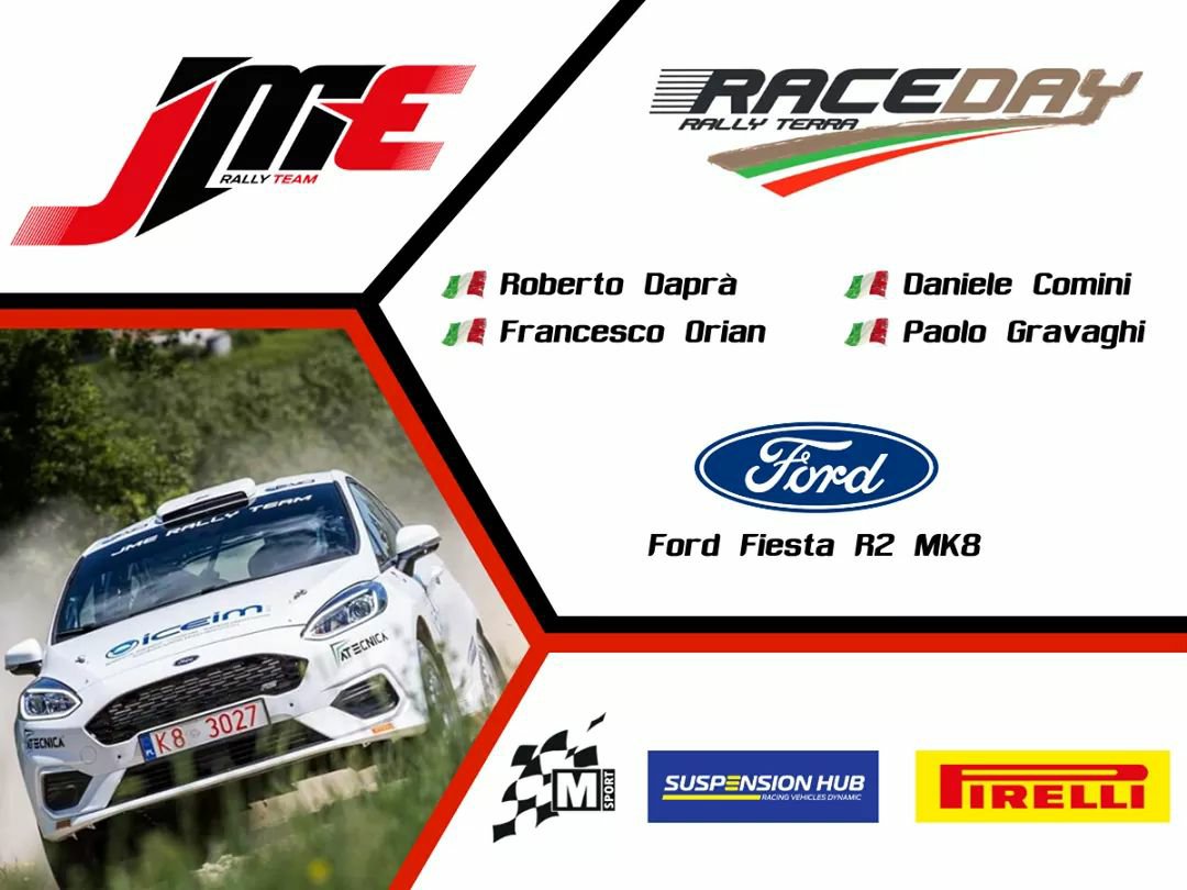 Due gli equipaggi che hanno scelto le Ford Fiesta R2 MK8 del JME Rally Team. Roberto Daprà e Daniele Comini saranno al volante delle performanti vetture dell’Ovale Blu gommate da Pirelli, e al loro fianco nel ruolo di co-equiper avranno rispettivamente Francesco Orian e Paolo Gravaghi.